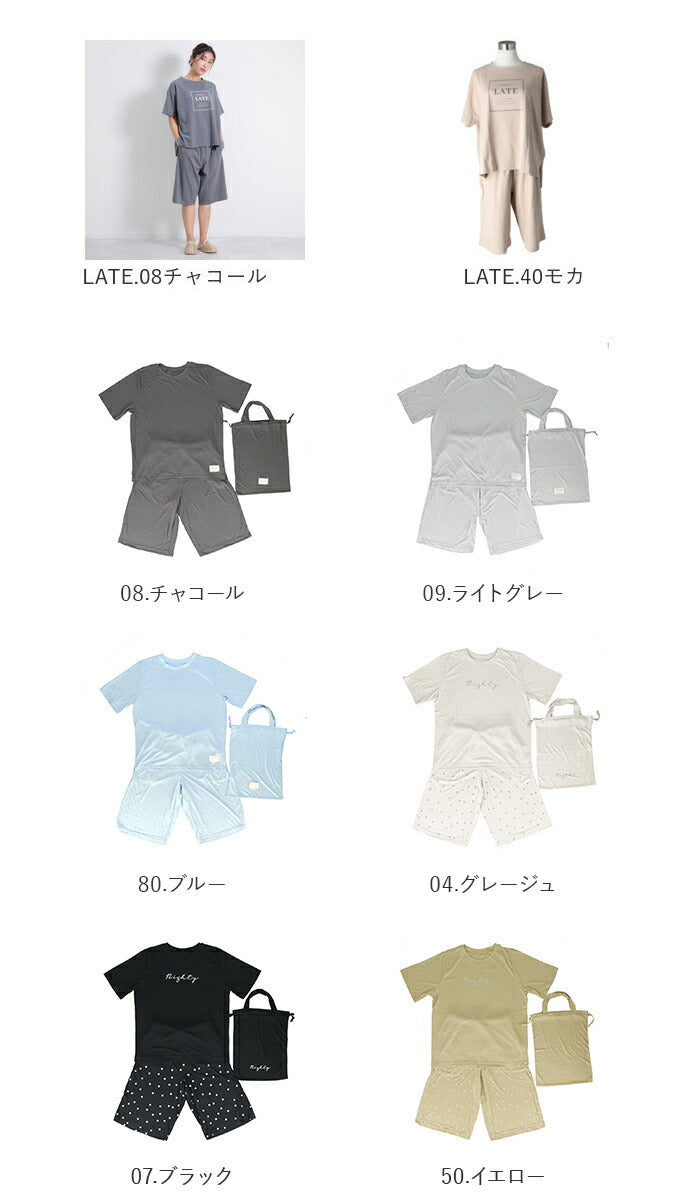 After nine アフターナイン ルームウェア レディース 半袖 楽天 パジャマ 部屋着 普段着 ルームウエア セットアップ 上下セット 上下 セット 巾着付き 巾着 ロゴ グロリア GLORIA 吸水