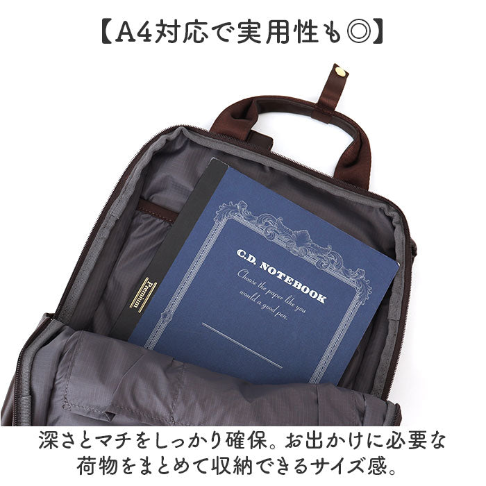 ・持ち手を使ってフック等に掛けたりリュックを下ろすシーンでも便利。トート風に持ってもOK。