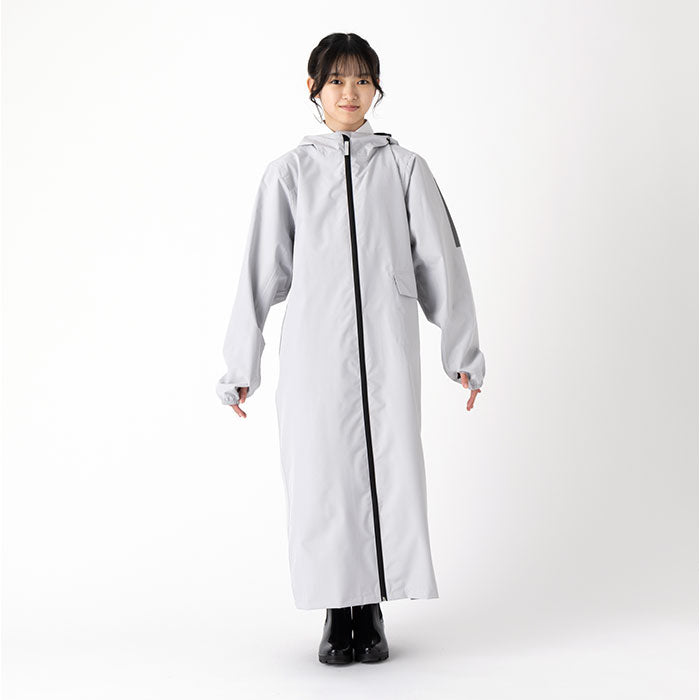 ・足元まで届くロング丈が、雨の跳ね返りや横からの吹き込みも受け止める♪