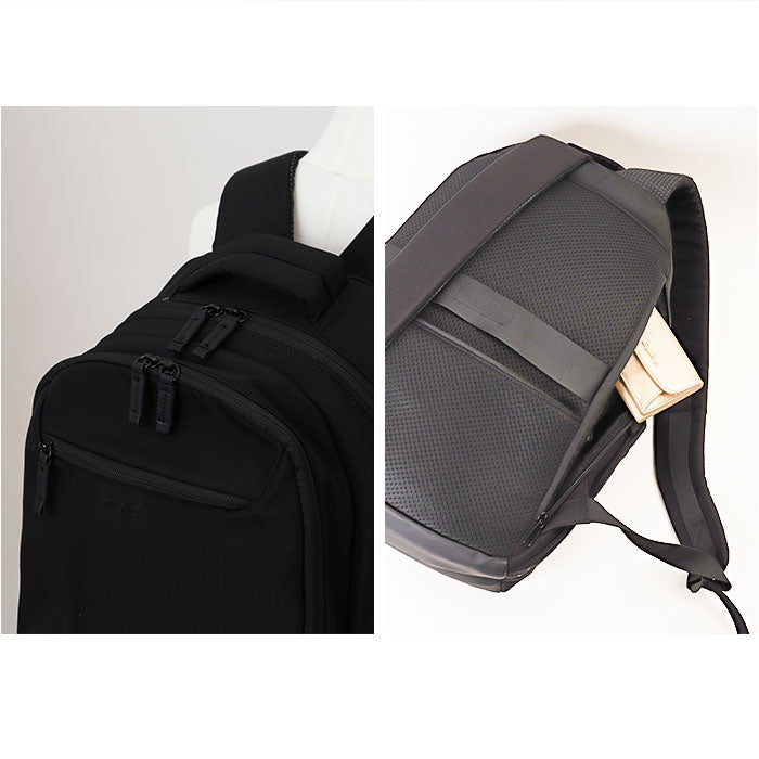15.4インチまで対応のノートPC専用のクッション付きスペースを内蔵し、大切なデバイスをしっかり保護できる構造◎