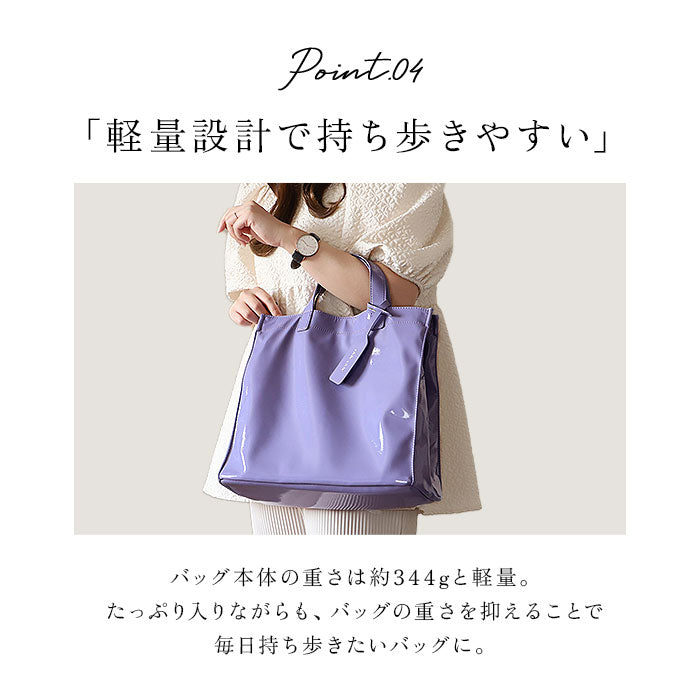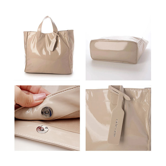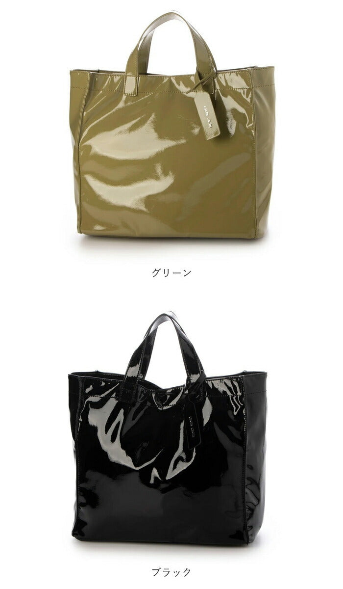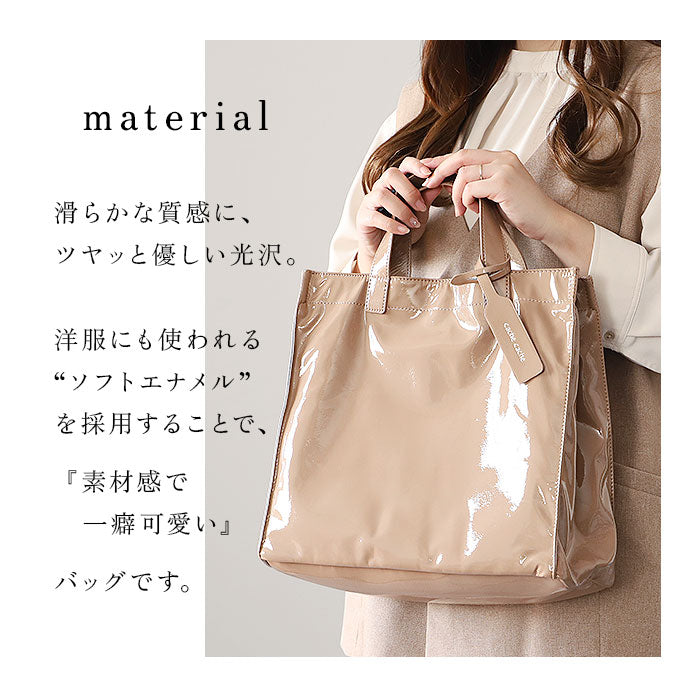 cachecache カシュカシュ トートバッグ エナメル 通販 トートバック トート 手提げバッグ 手提げバック 手提げ ハンドバッグ スクエア 四角 ポケット 上品 ツヤ感 柔らかい やわらかい