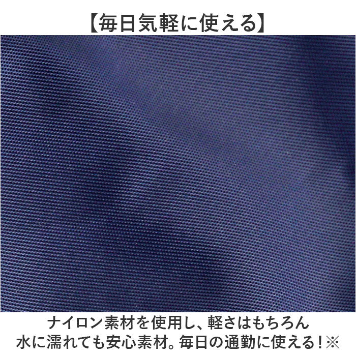 ・ナイロン素材を使用し、軽さはもちろん水に濡れても安心素材。毎日の通勤に使える!※