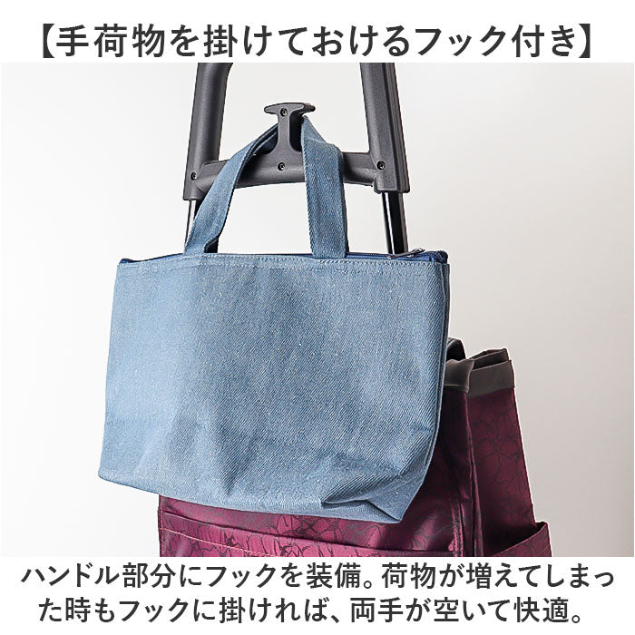 ・フレーム背面のフックでお店のショッピングカートに引っ掛けOK。置き場を気にせずお買い物♪
