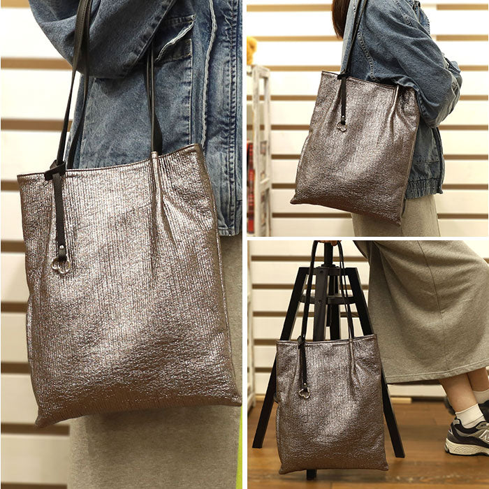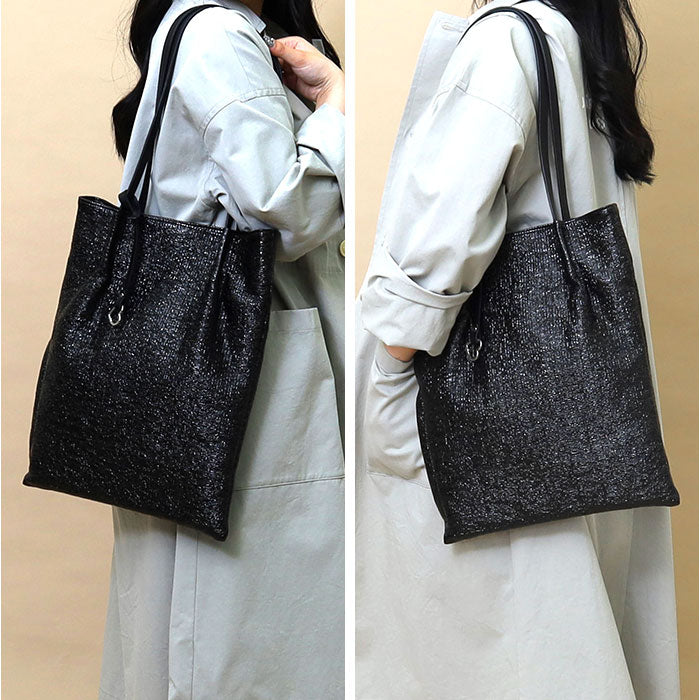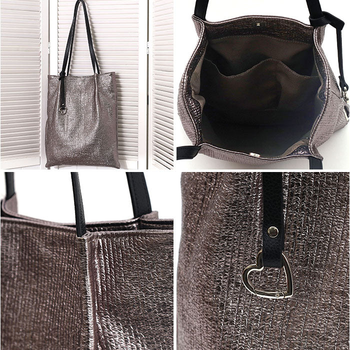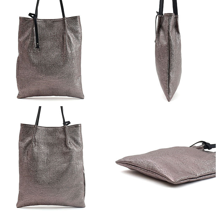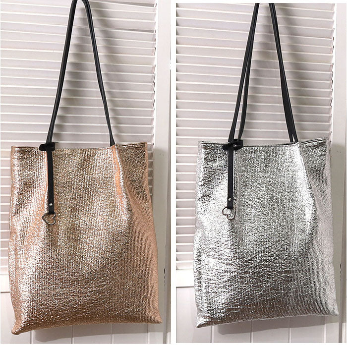 ・シンプルコーデを華やかに演出♪「cooco メタリックツマミハンドルフラットトートバッグ」