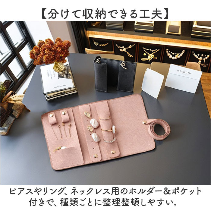 ・ピアスやリング、ネックレス用のホルダー&ポケット付きで、種類ごとに整理整頓しやすい。