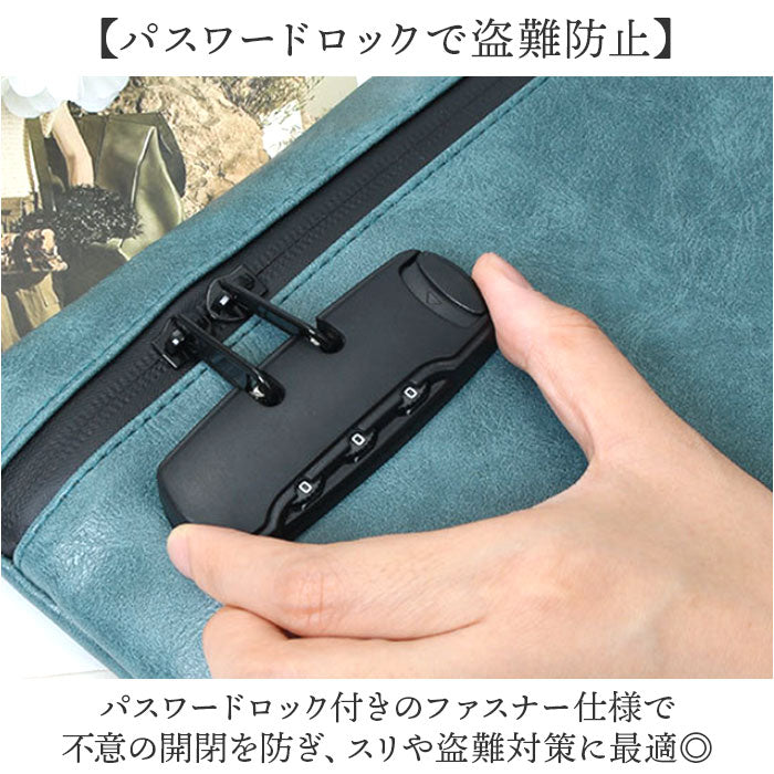 ・パスワードロック付きのファスナー仕様で不意の開閉を防ぎ、スリや盗難対策に最適◎