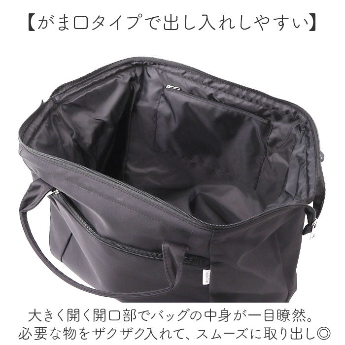 ・大きく開く開口部でバッグの中身が一目瞭然。必要な物をザクザク入れて、スムーズに取り出し◎