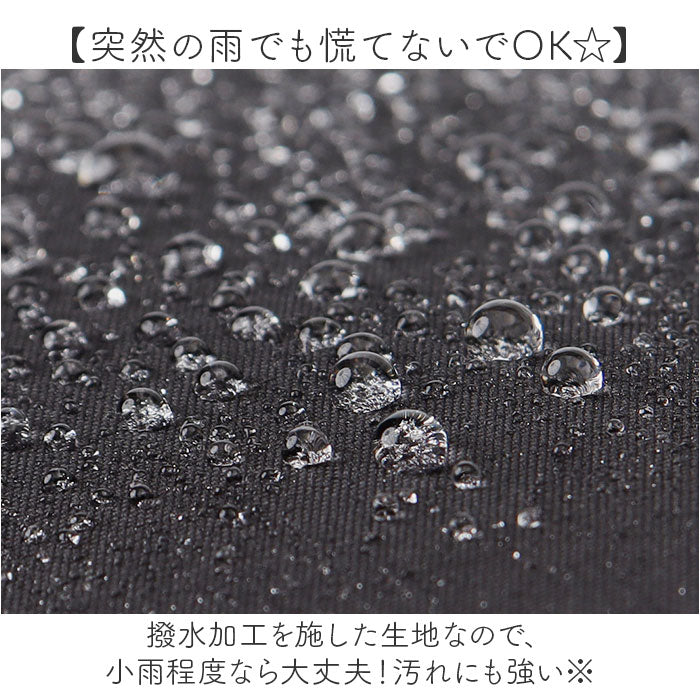 ・撥水加工を施した生地なので、小雨程度なら大丈夫!汚れにも強い。※完全防水ではありません。
