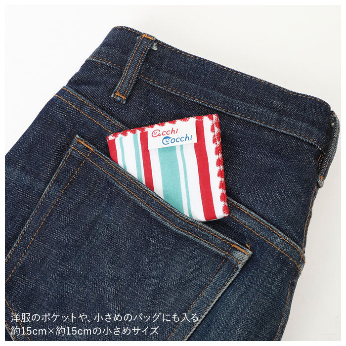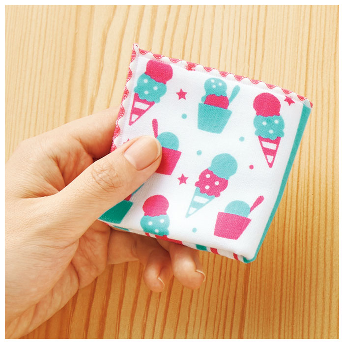 ・表面は綿100%の手ぬぐい生地で、裏面はタオル生地の肌触りのいいハンカチ。