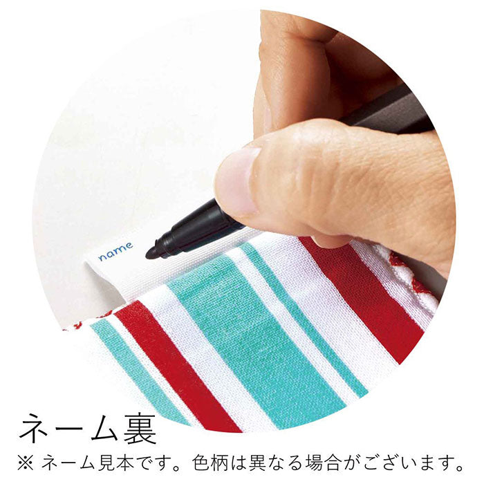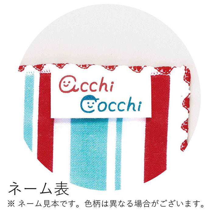「acchi cocchi」のロゴが入ったタグの裏面に記名が可能。