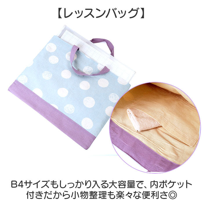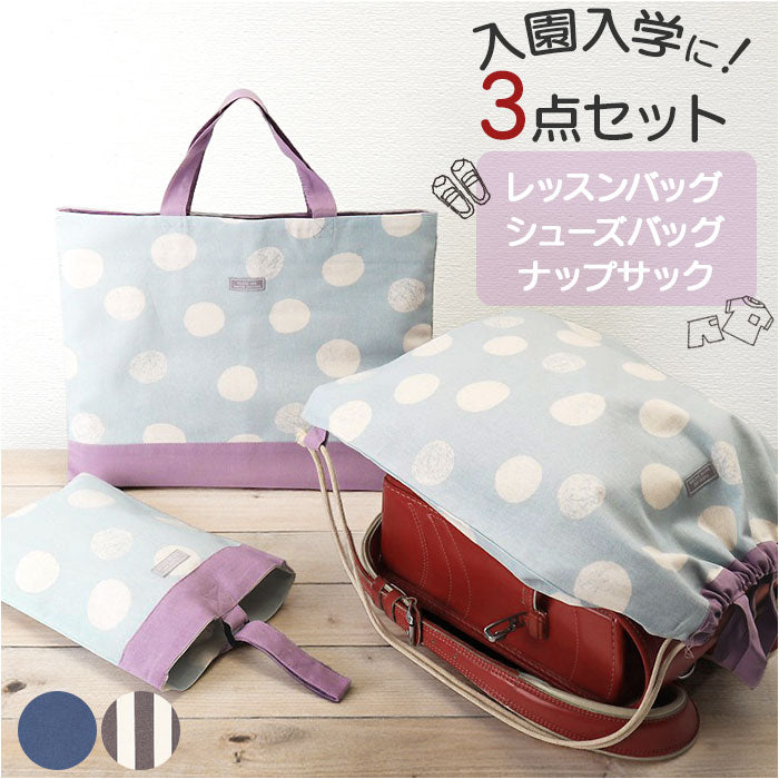 ・レッスンバッグ、シューズバッグ、ナップサックの3点セット。