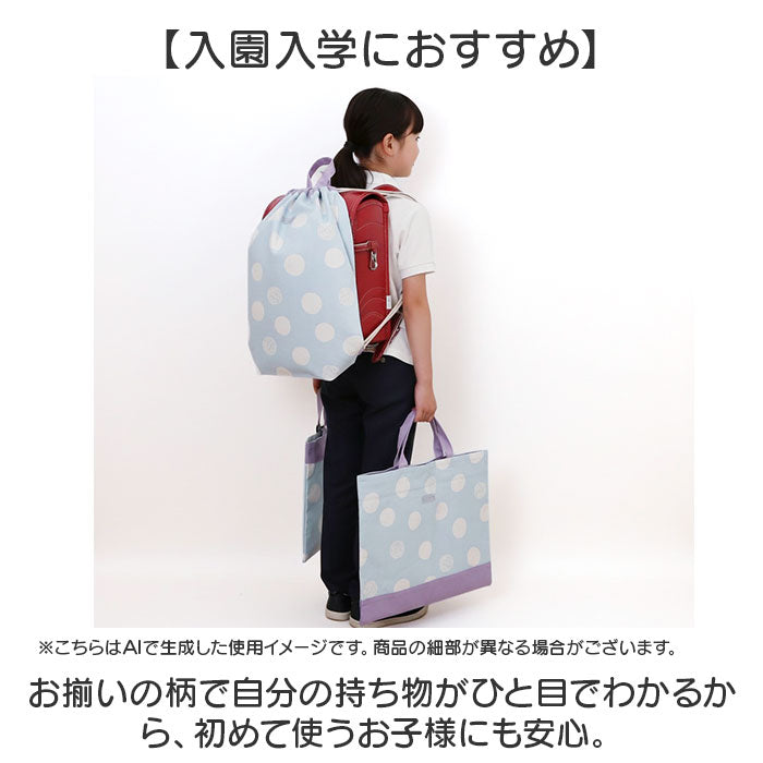 ・お揃いの柄で自分の持ち物がひと目でわかるから、初めて使うお子様にも安心。