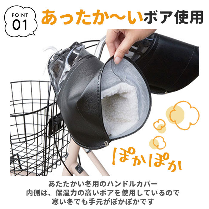 自転車 ハンドルカバー 通販 電動 防寒 あったか 冬用 電動アシスト自転車 裏ボア 肌側ボア クリスマスプレゼント 自転車通勤 通学 シンプル 無地 敬老の日 ギフト バレンタイン