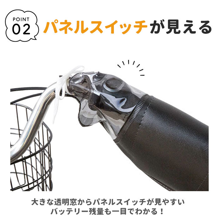 ・透明窓からパネルスイッチが見やすく、操作スペースが大きいので変速操作がしやすい。また、バッテリー残量も一目でわかる