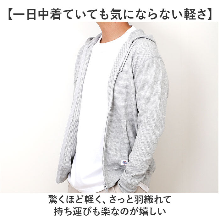 JEMORGAN ワッフル JD610-12S ジェーイーモーガン 通販 パーカー フーディー ジップアップパーカー フルジップパーカー サーマル 長袖 薄手 メンズ ワッフル生地 春秋 秋冬 レディース