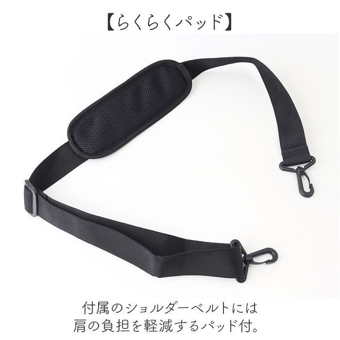 ・付属のショルダーベルトには肩の負担を軽減するパッド付。