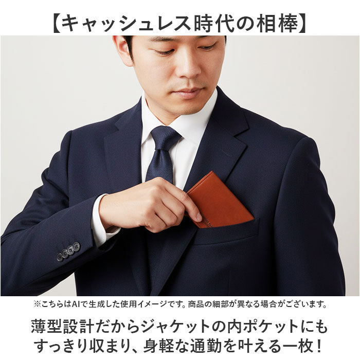 ・薄型設計だからジャケットの内ポケットにもすっきり収まり、身軽な通勤を叶える一枚!