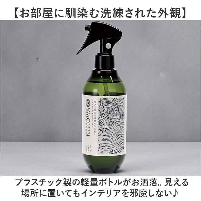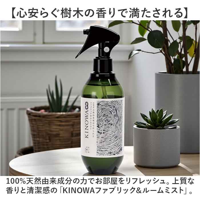 【心安らぐ樹木の香りで満たされる】 100%天然由来成分の力でお部屋をリフレッシュ。上質な香りと清潔感の「KINOWAファブリック&ルームミスト」。