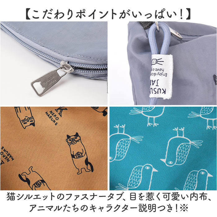 ・猫シルエットのファスナータブ、目を惹く可愛い内布、アニマルたちのキャラクター説明つき!