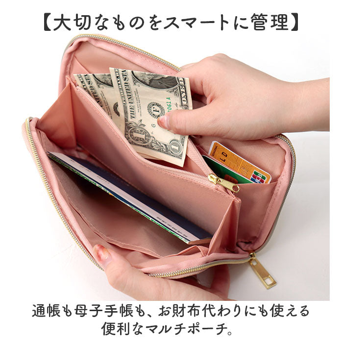 ・通帳も母子手帳も、お財布代わりにも使える便利なマルチポーチ。