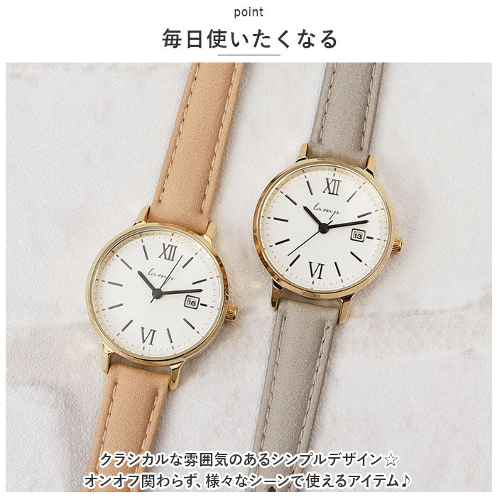 lamp ランプ 腕時計 革ベルト レディース 通販 ウォッチ 時計 カレンダー 見やすい ベルト ベーシック ブランド 女性 女性用 女の子 婦人 シンプル 日付カレンダー 中学生 高校生