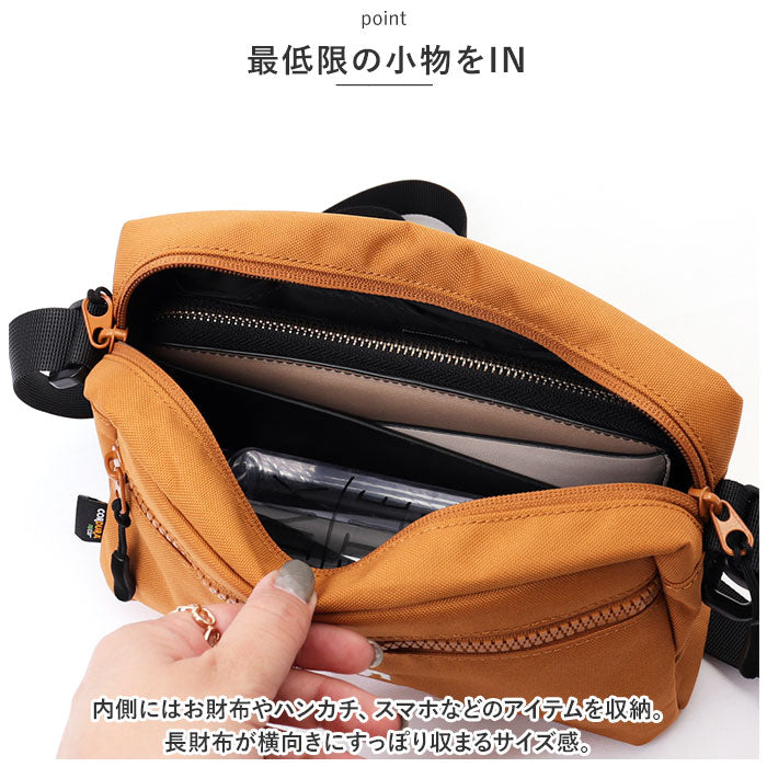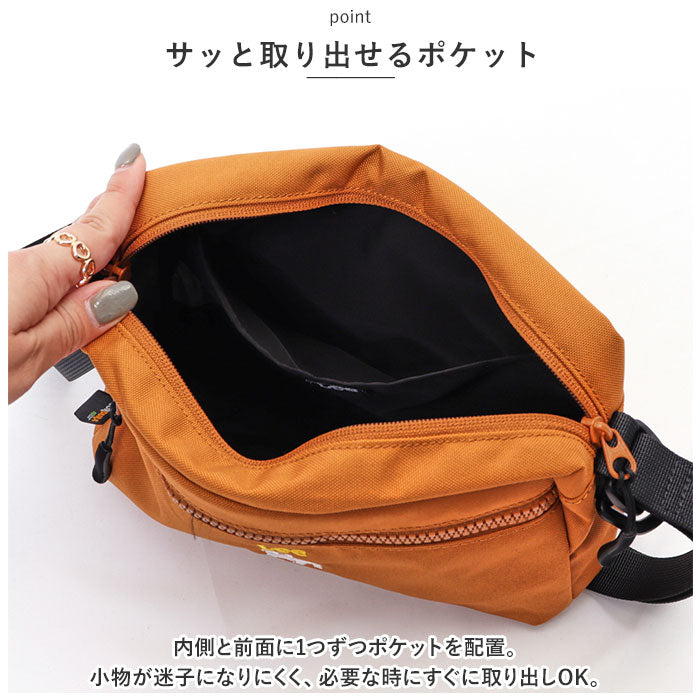 ・使いやすいスクエア型のミニバッグ。タウンユースにはもちろん、両手が空くのでレジャーやアウトドアシーンなどでも活躍。