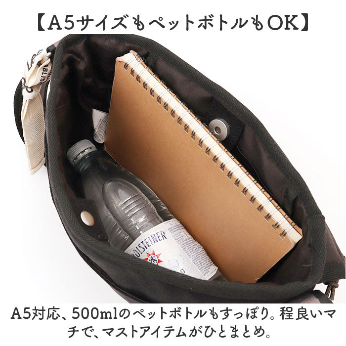 ・A5対応、500mlのペットボトルもすっぽり。程良いマチで、マストアイテムがひとまとめ。