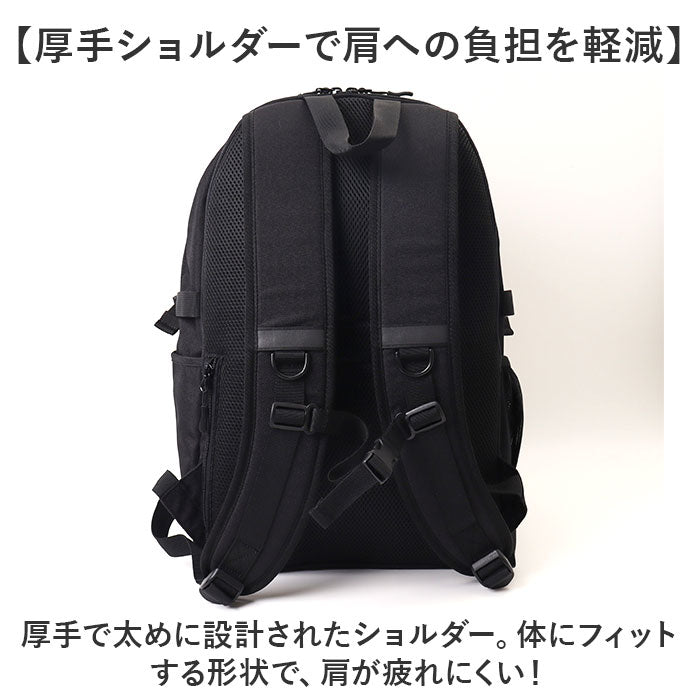 ・背面とショルダーは通気性の良いメッシュ仕様。暑い季節の長時間移動も、サラッと快適。