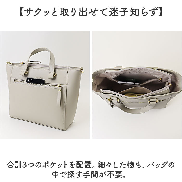 ・合計3つのポケットを配置。細々した物も、バッグの中で探す手間が不要。