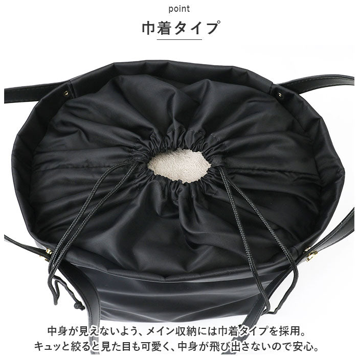 ・中身が見えないよう、メイン収納には巾着タイプを採用。キュッと絞ると見た目も可愛く、中身が飛び出さないので安心。