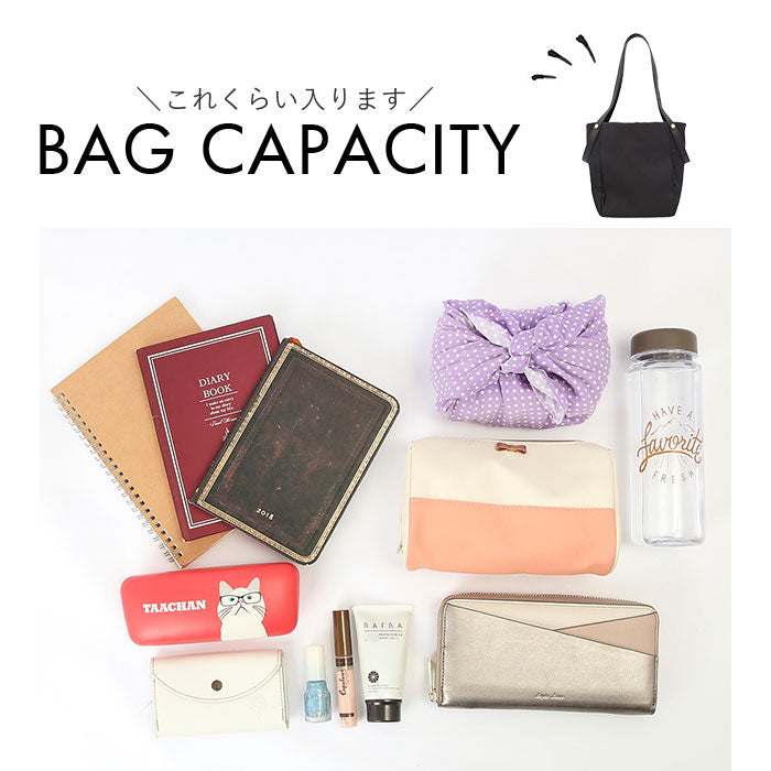 ・コンパクトに見えてしっかりマチがあるので、収納力◎ペットボトルや折りたたみ傘、長財布やお弁当などの必要な物がひとまとめにできるのでデイリー使いにぴったり。