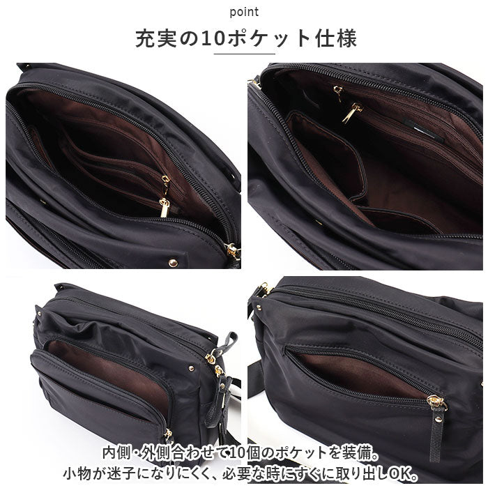 LIZDAYS リズデイズ ショルダーバッグ ポケット たくさん 通販 ショルダーバック ショルダー 肩掛け 斜め掛け ななめがけ ナイロン 軽量 多収納 大容量 撥水 はっ水 レディース 無地