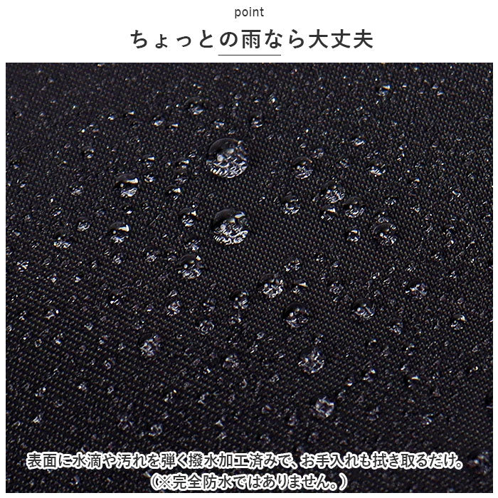 ・表面に水滴や汚れを弾く撥水加工済みで、お手入れも拭き取るだけ。(※完全防水ではありません。)