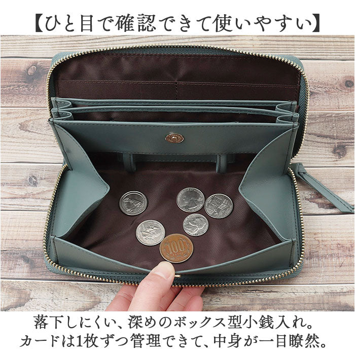 ・落下しにくい、深めのボックス型小銭入れ。カードは1枚ずつ管理できて、中身が一目瞭然。