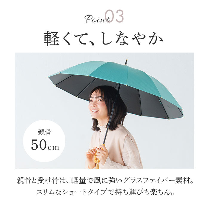・裏側にブラックコーティング加工を施した傘生地が、太陽光を強力に遮断!晴れの日も雨の日も頼りになる晴雨兼用タイプ。