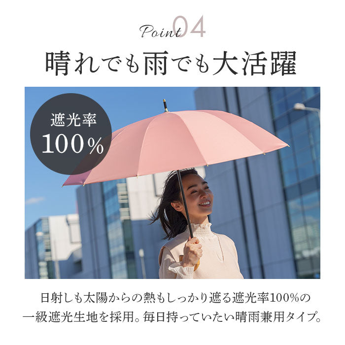 ・標準的な長傘よりも骨数の多い12本骨仕様。円を描くようなシルエットが日射しや雨を効果的にカット。
