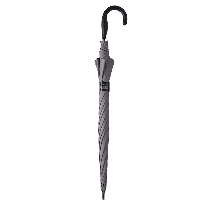 ・マブのロゴとテキスト入りの留めバンドはシンプルな傘のアクセントに。さらに幅広タイプの面ファスナーバンドだから、サッとまとめやすい。