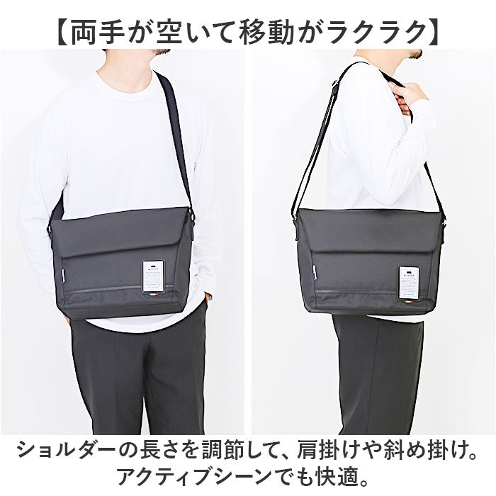 ・ショルダーの長さを調節して、肩掛けや斜め掛け。アクティブシーンでも快適。