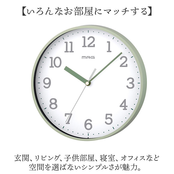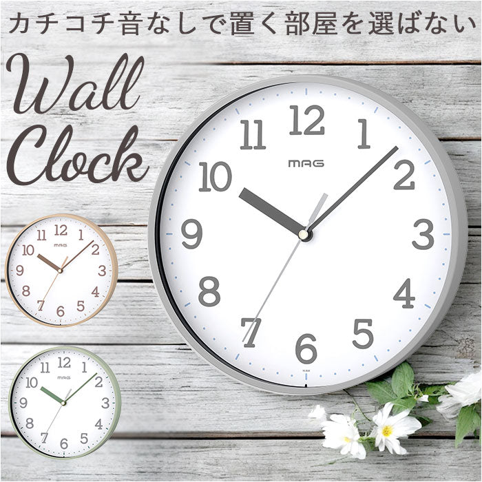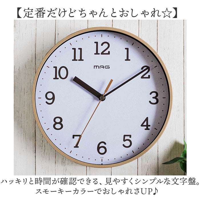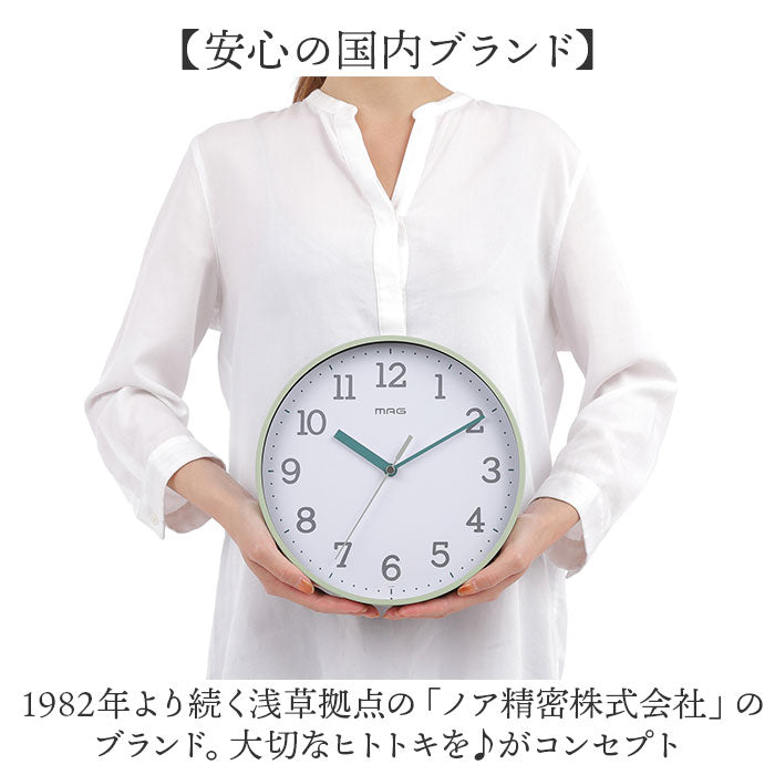 MAG マグ 掛け時計 通販 掛時計 時計 クロック 壁掛時計 壁掛け時計 ウォールクロック アナログ 連続秒針 ノア精密 見やすい 乾電池 小ぶり 小さめ シンプル ナチュラル リビング 寝室