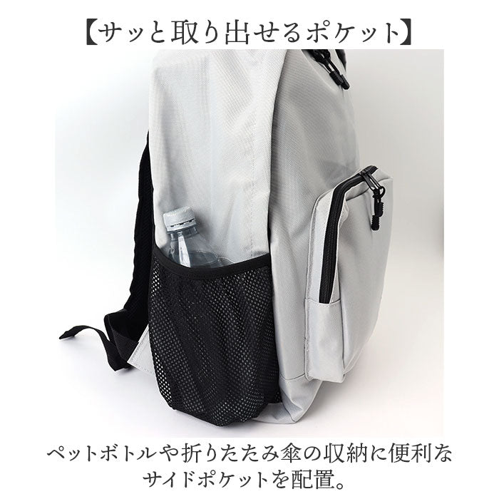 ・ペットボトルや折りたたみ傘の収納に便利なサイドポケットを配置。