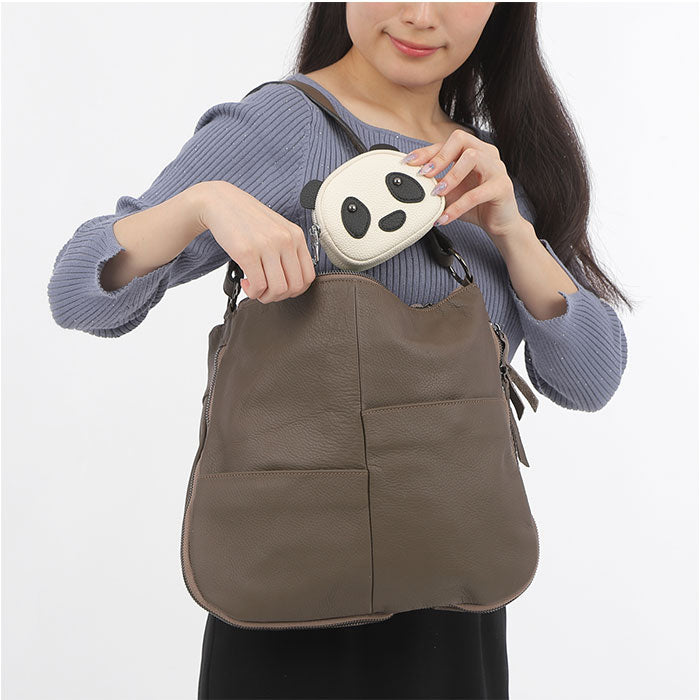 ・小物整理に便利な「Melody レザーポーチ パンダポーチ」。