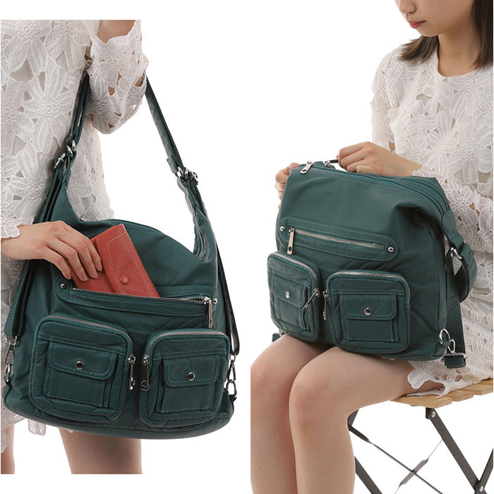 ・ショルダー紐を引っ張って、リュック・斜め掛けショルダー・肩掛けトートとして使える。