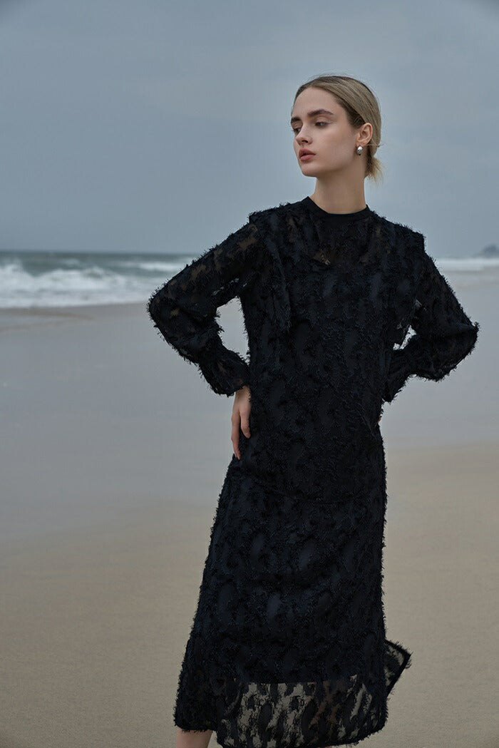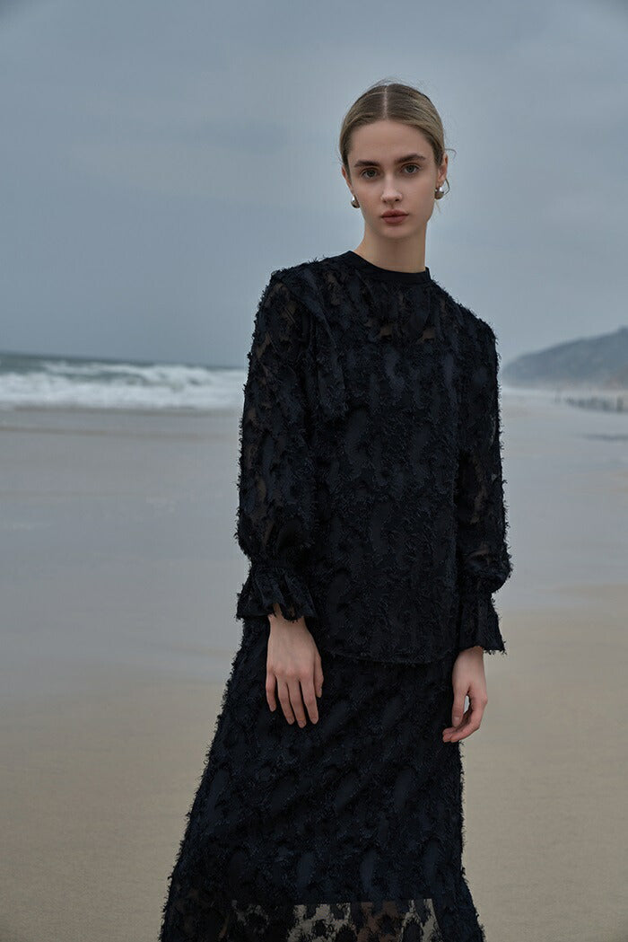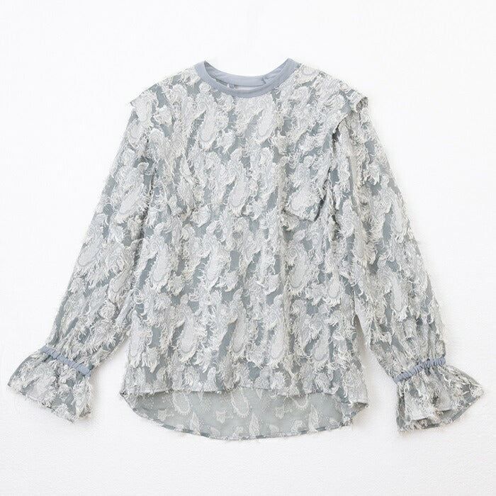 MIND カットジャガードブラウス 通販 ブラウス 長袖 レディース キャンディスリーブ ジャガード プルオーバー 透け感 レース レイヤード ペイズリー柄 光沢 シースルー おしゃれ ブランド