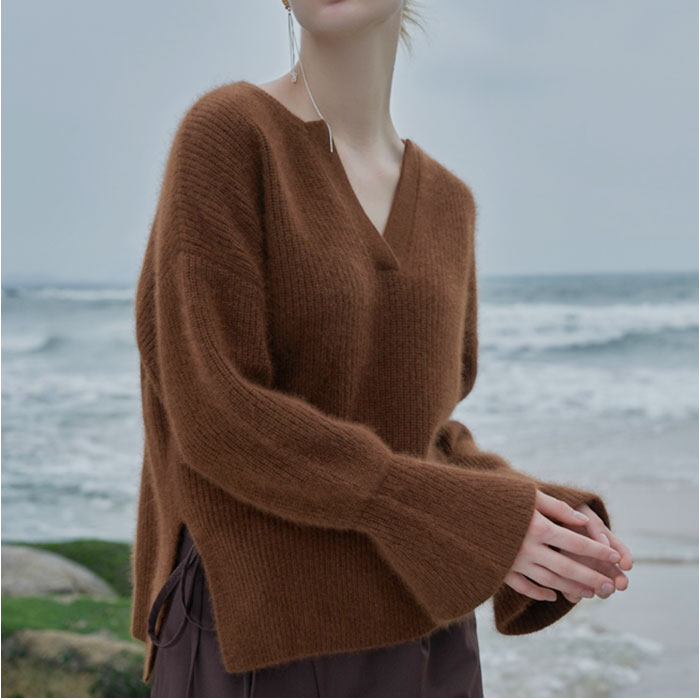 MIND マインド ラクーン シルクニット 通販 セーター キーネックニット 重ね着 レイヤード シルク ニット ドロップショルダー シルクウール キーネック 保温性 あたたかい 暖かい 袖 長め