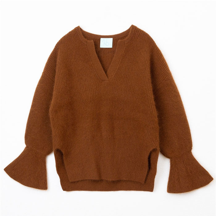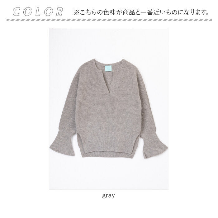 ・毛が抜けにくい特徴を持つラクーン素材と、お肌に馴染むシルクウール素材から作られたキーネックニット。