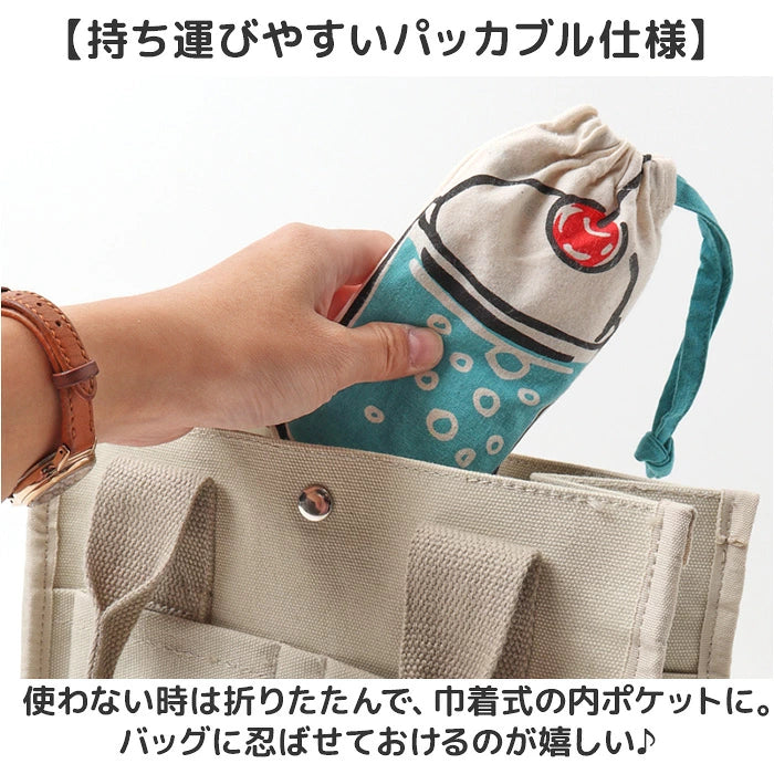 ・使わない時は折りたたんで、巾着式の内ポケットに。バッグに忍ばせておけるのが嬉しい♪