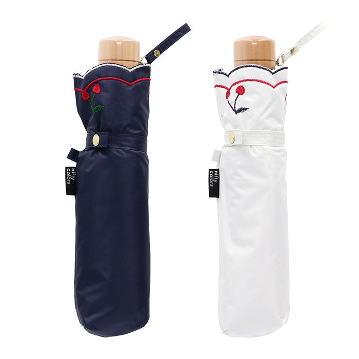 晴雨兼用傘 niftycolors 通販 日傘 ニフティカラーズ 折りたたみ傘 晴雨兼用 折りたたみ 傘 折り畳み傘 軽い 軽量 UVカット 99.9% 遮光 遮熱 50cm 撥水 グラスファイバー おしゃれ 刺繍