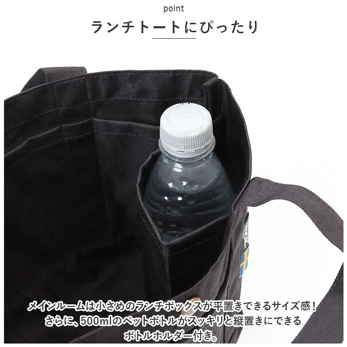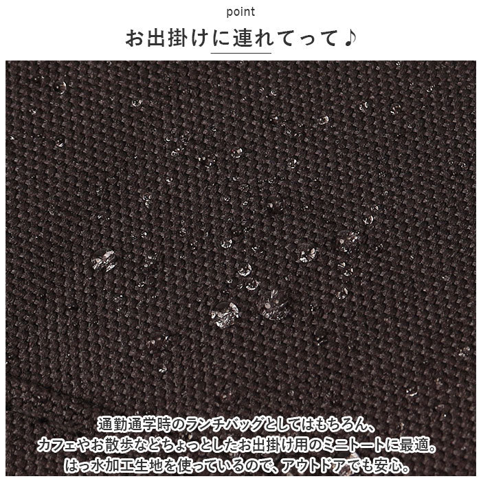 ・通勤通学時のランチバッグとしてはもちろん、カフェやお散歩などちょっとしたお出掛け用のミニトートに最適。はっ水加工生地を使っているので、アウトドアでも安心。