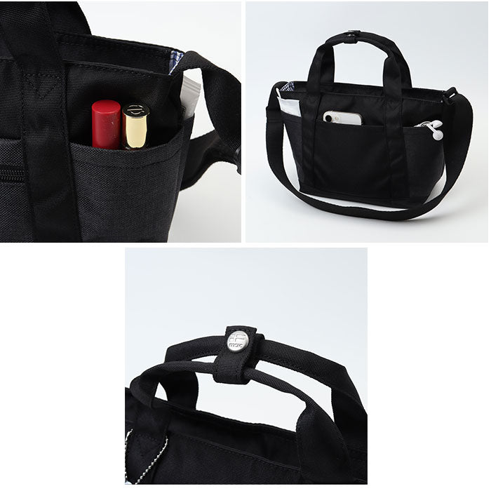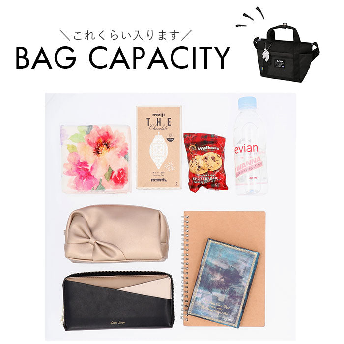 ・ハンドルをまとめて手持ちで。ショルダーの長さを調節し、肩掛けや斜め掛けも自在な2way。