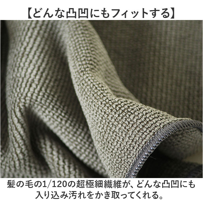 ・髪の毛の1/120の超極細繊維が、どんな凸凹にも入り込み汚れをかき取ってくれる。